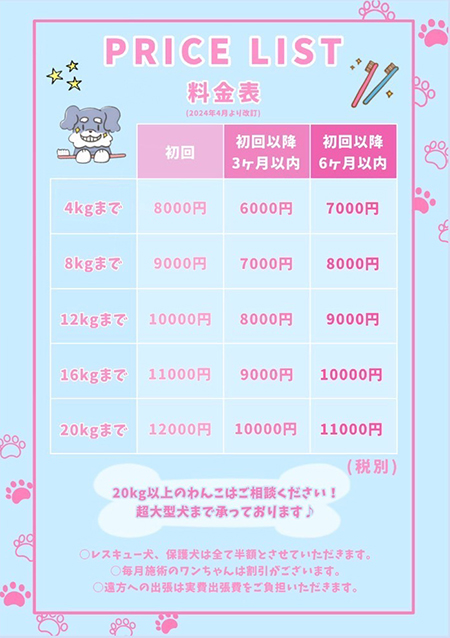 *病気治療中や極度に怖がりなわんちゃんはお断りする場合もあります。